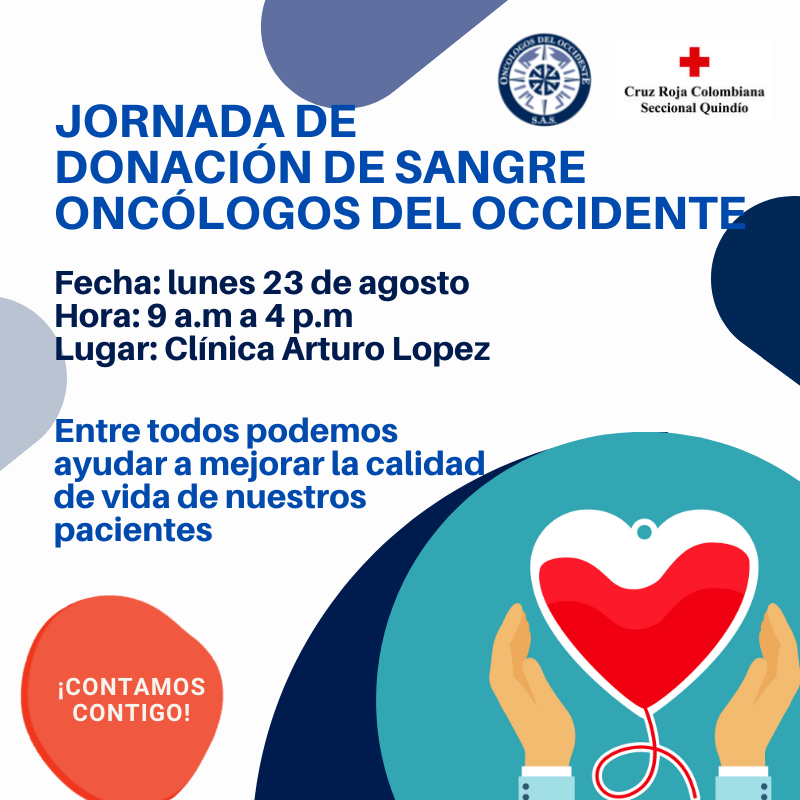 Jornada Donación Sangre en Oncólogos Del Occidente Clínica Arturo López de Armenia el lunes 23 Agosto de 9am a 4pm